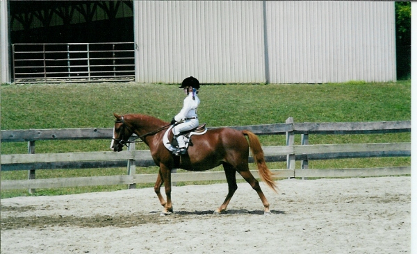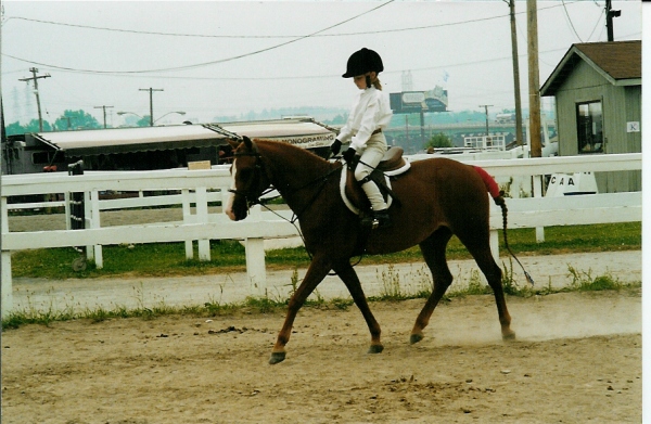 Here is April with 7 year old Taylor Trask riding her!