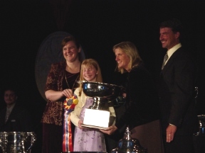 The Master of Ceremonies thought it was really funny that the trophy was bigger than Katy. When describing it to her mother, Katy said she thought she could sit in it! |