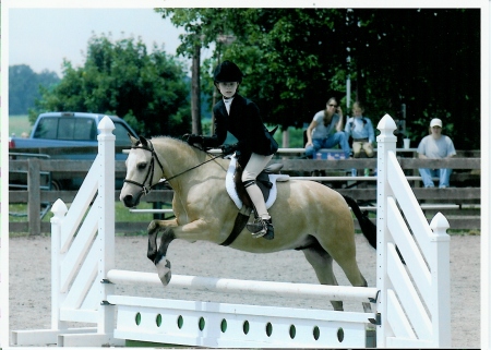 In 1998 as a four year old we began to show Reggie seriously. At his first show he was champion in the Pleasures and Reserve in the hunters. We weren't even sure he would jump the first jump. But if you refuse, you have to do it again, so Reggie figured he might as well jump it the first time. he goes English, Western, he jumps, and he even drives.