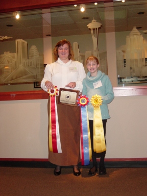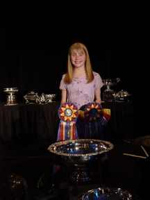 The Master of Ceremonies thought it was really funny that the trophy was bigger than Katy. When describing it to her mother, Katy said she thought she could sit in it! |